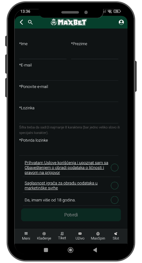 Proces registracije putem Maxbet mobilne aplikacije